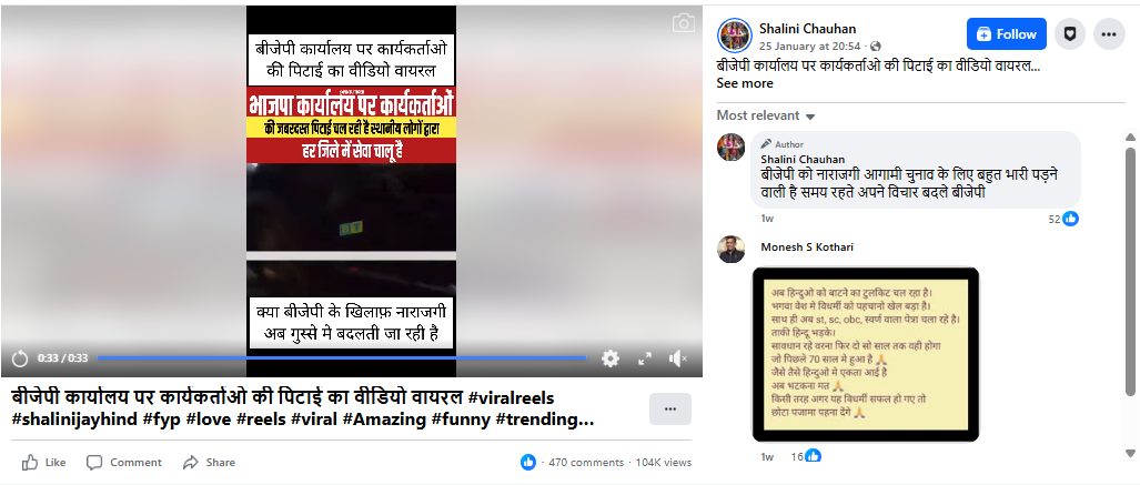 Screenshot of an old, unrelated video being shared as recent claiming to be attack on BJP workers over UGC regulations. (PC: X)