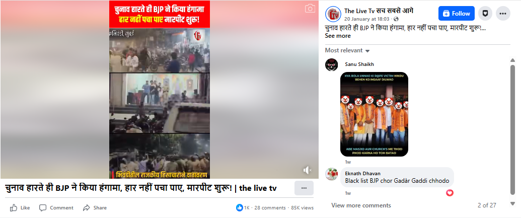 The news report uploaded on 19 January mentioned: A major political clash broke out, and police resorted to a lathi-charge following an alleged life-threatening attack on the former mayor and Konark Vikas Aghadi’s victorious candidate, Vilas R Patil at his bungalow in Bhiwandi.