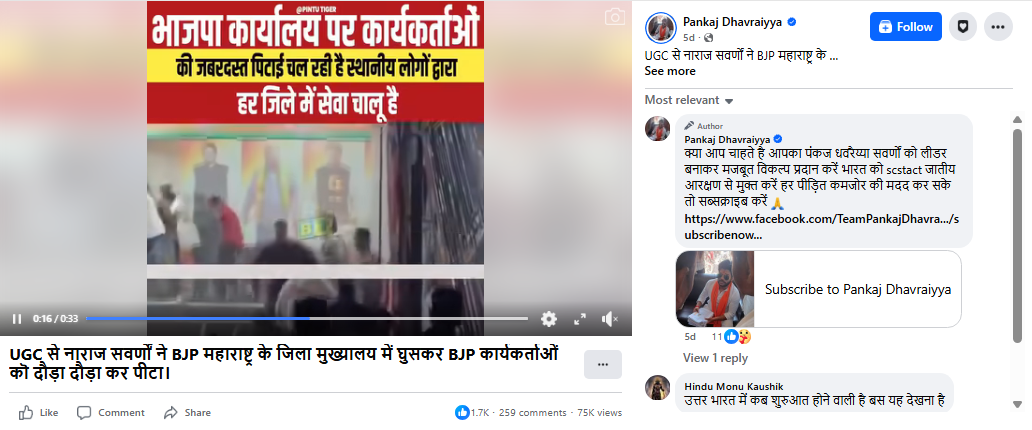 Conclusion: Old, unrelated video from Bhiwandi is being shared as recent claiming to show an attack on BJP workers over UGC regulations. The viral claim is misleading.