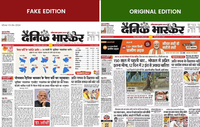 Also, action was demanded against the people sharing this fake survey. The viral post contains a screenshot of the first page of Dainik Bhaskar newspaper, which mentions the Bhopal edition and the date of April 13. We checked the Bhopal edition of the relevant date and found that no such survey was published on that day in the newspaper, rather the first news was related to unprecedented rainfall.