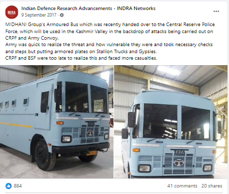 This post mentioned that MIDHANI Group’s Armoured Bus were handed over to the Central Reserve Police Force. The post was made on 9th September, 2017.