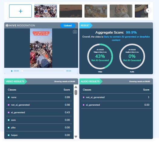 HIVE Moderation suggested that the video is AI-generated. The result stated that overall, the video is likely to contain AI-generated or deepfake content.
