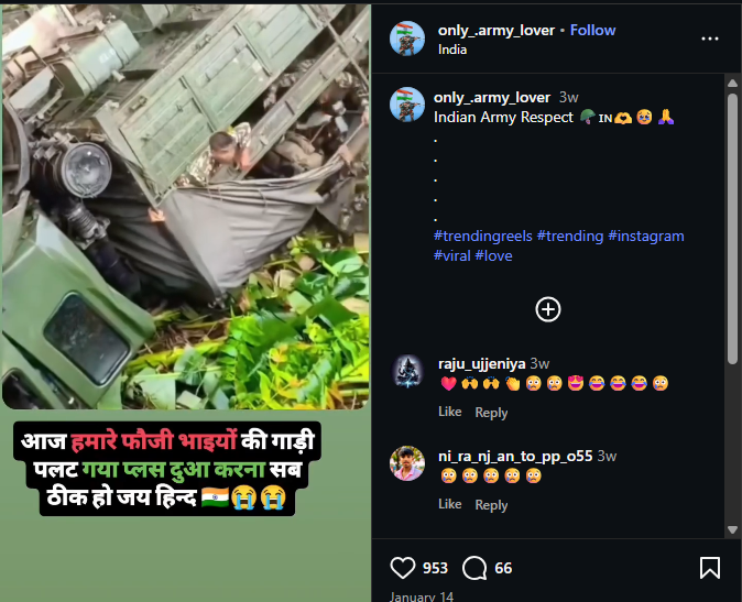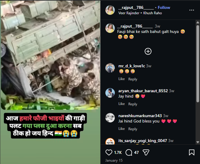 Lighthouse Journalism found a video being widely shared on social media platforms. The video showed a truck carrying soldiers being overturned. It was claimed that the video was from India.