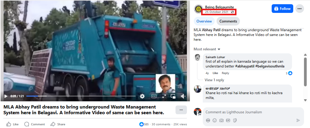 Lighthouse Journalism found a video being widely shared on social media platforms. In a one-minute video, the system of underground garbage bins has been featured. It is claimed in the video that the system is from Belgaum, implemented by MLA Abhay Patil.