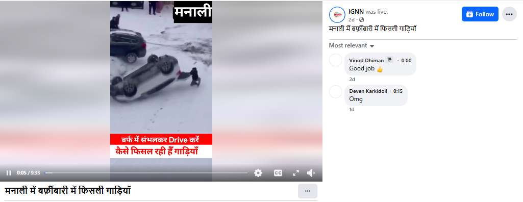 Lighthouse Journalism found a video being widely shared on social media platforms of a car skidding on a snow-covered road. It was claimed along with the video that it was from a popular tourist destination Manali in India.
