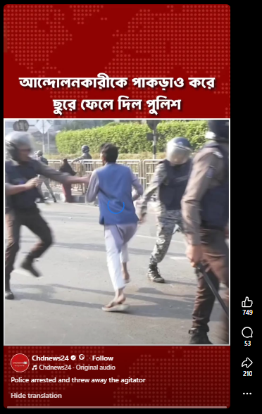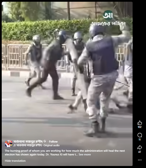 Conclusion: Unrelated video from Bangladesh about protest demanding justice for killing of Sharif Osman Hadi now shared as recent ahead of West Bengal elections claiming to show Indian Army personnel lathi charging TMC goons. The viral claim is misleading.