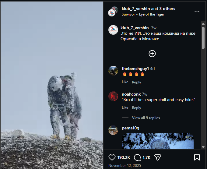 The caption said: This is not AI. This is our team at the summit of Orizaba Peak in Mexico