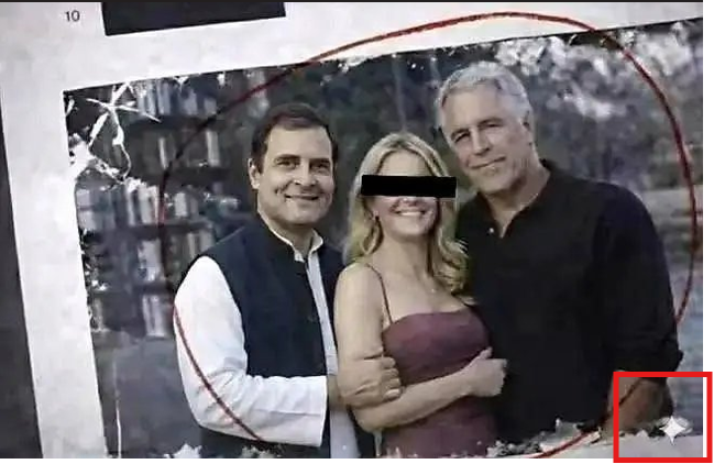 Through Google Gemini SynthID we found: This image of Rahul Gandhi and Jeffrey Epstein is generated by AI. A technical analysis confirms that the image contains a digital watermark indicating it was created or edited using Google’s AI tools.