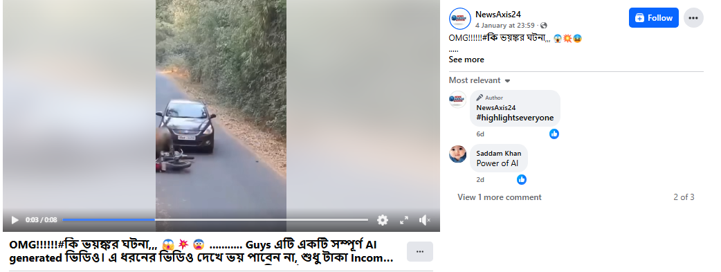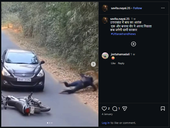 Conclusion: Viral video featuring a tiger attack on a biker in India is AI-generated. The viral claim is fake.