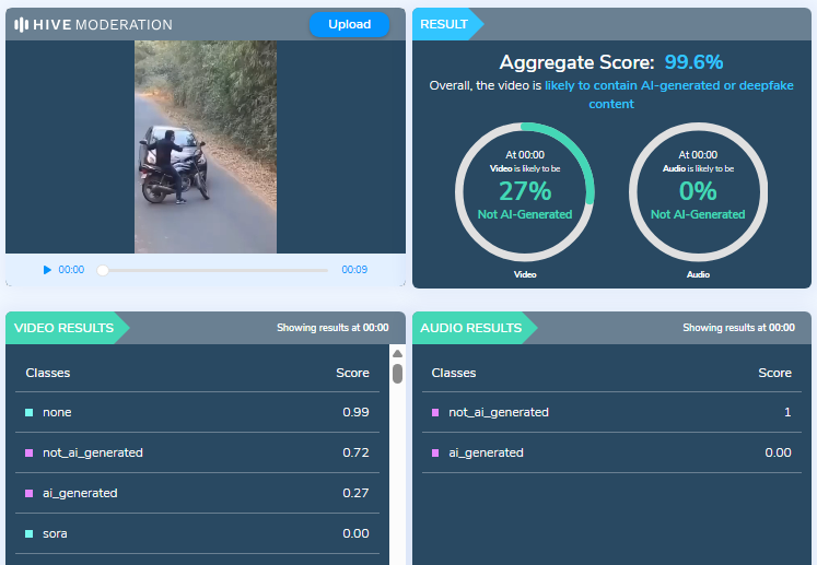 We then ran the video through HIVE Moderation and undetectable AI. Both the tools concluded that the video was AI generated.