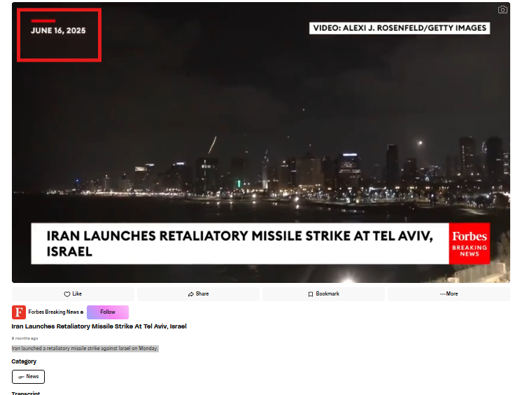 Conclusion: Old video from June 2025, goes viral as recent as war escalates in West Asia. The viral claim is misleading.